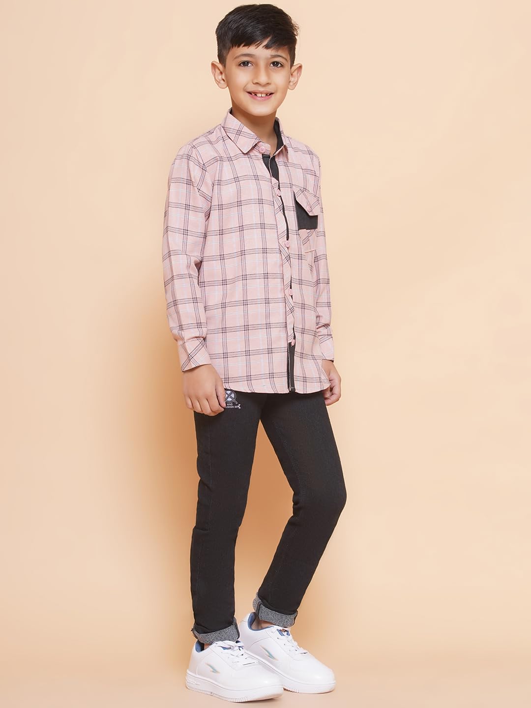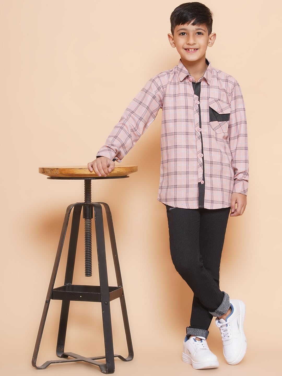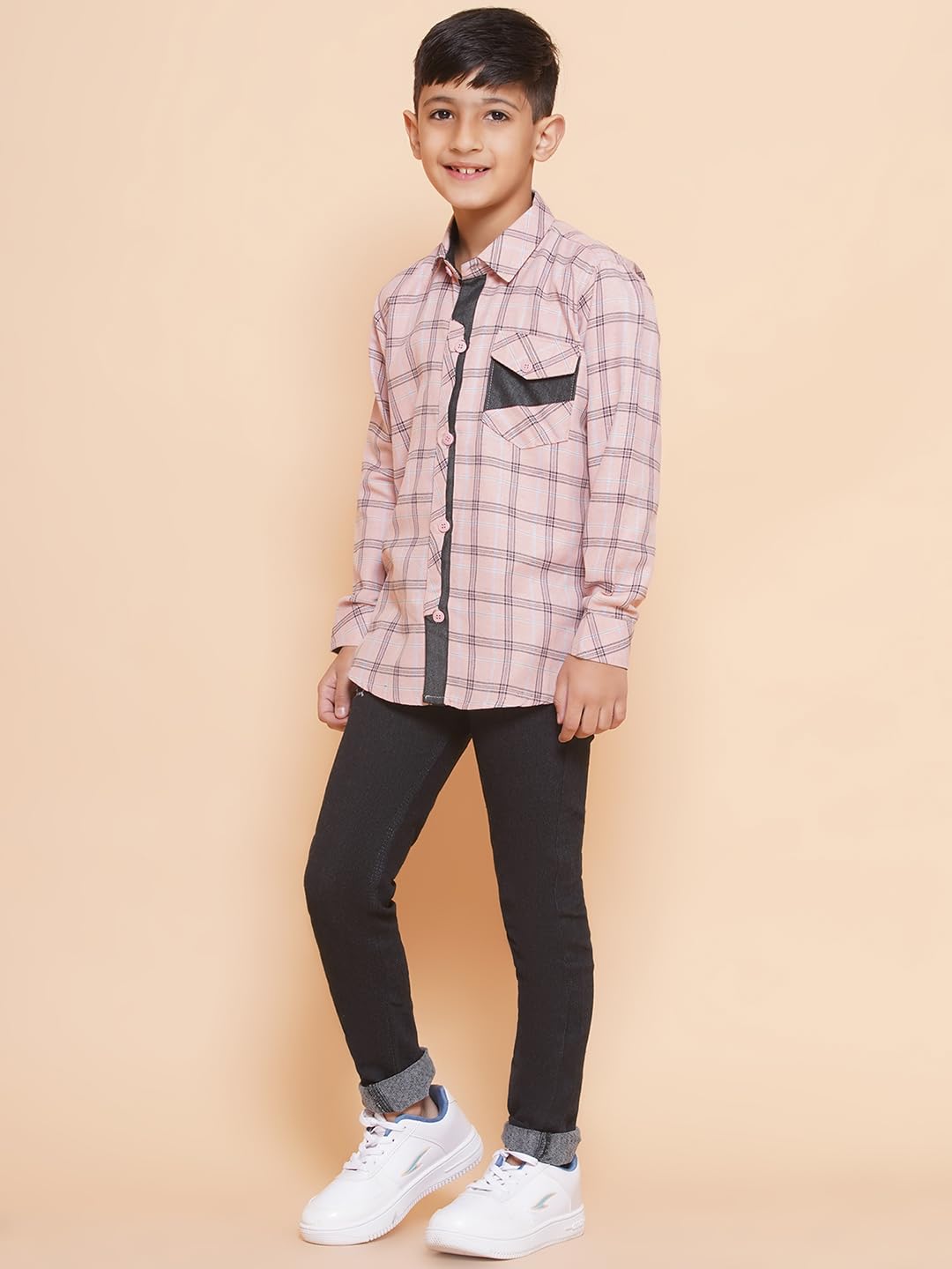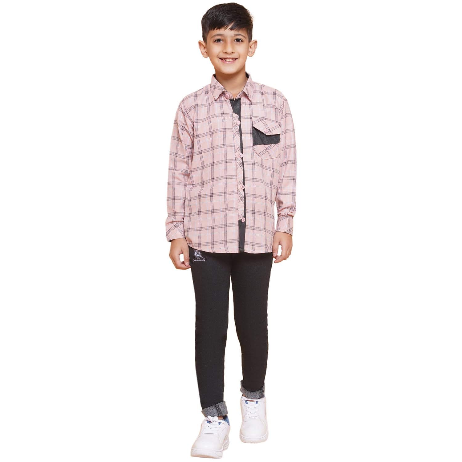 Get them ready for the weekend with these cool and casual shirt & jeans from AJ Dezines. Your little champ will look his best when wearing this handsome Shirt and Jeans set. Shirt made from a comfortable drill cotton that gives a breathable fit, this shirt comes with a classic check pattern with welt pocket design. Jeans made from denim, Perfect fit jeans in super-soft stretch denim fabric to take them through the day in comfort, these skinny-fit jeans feature four pockets, flat rivets, fly and button fastening. A faux leather belt completes the look. This set features attractive design and looks just irresistible. This clothing set for boys is available in different colors blue and pink.
