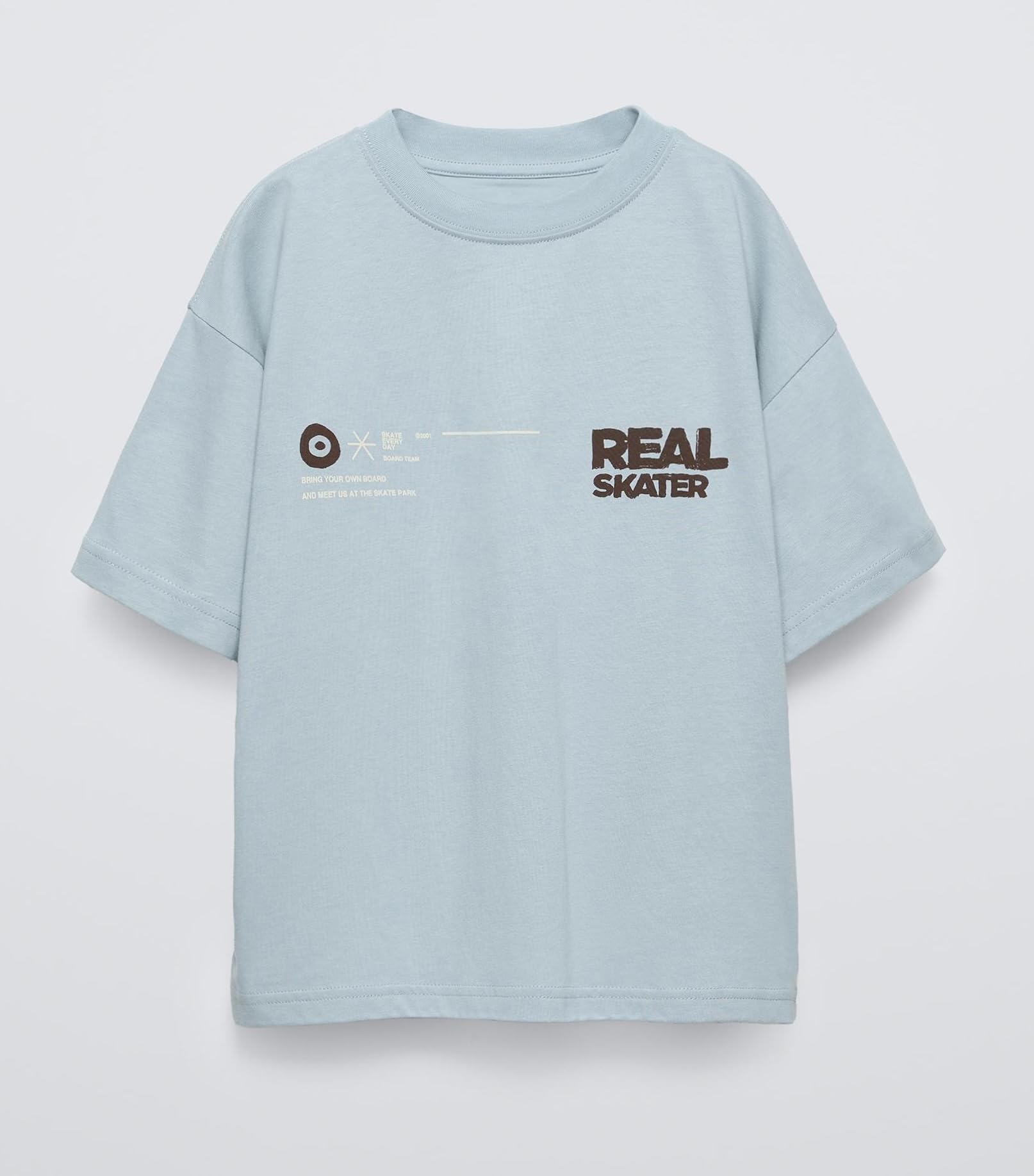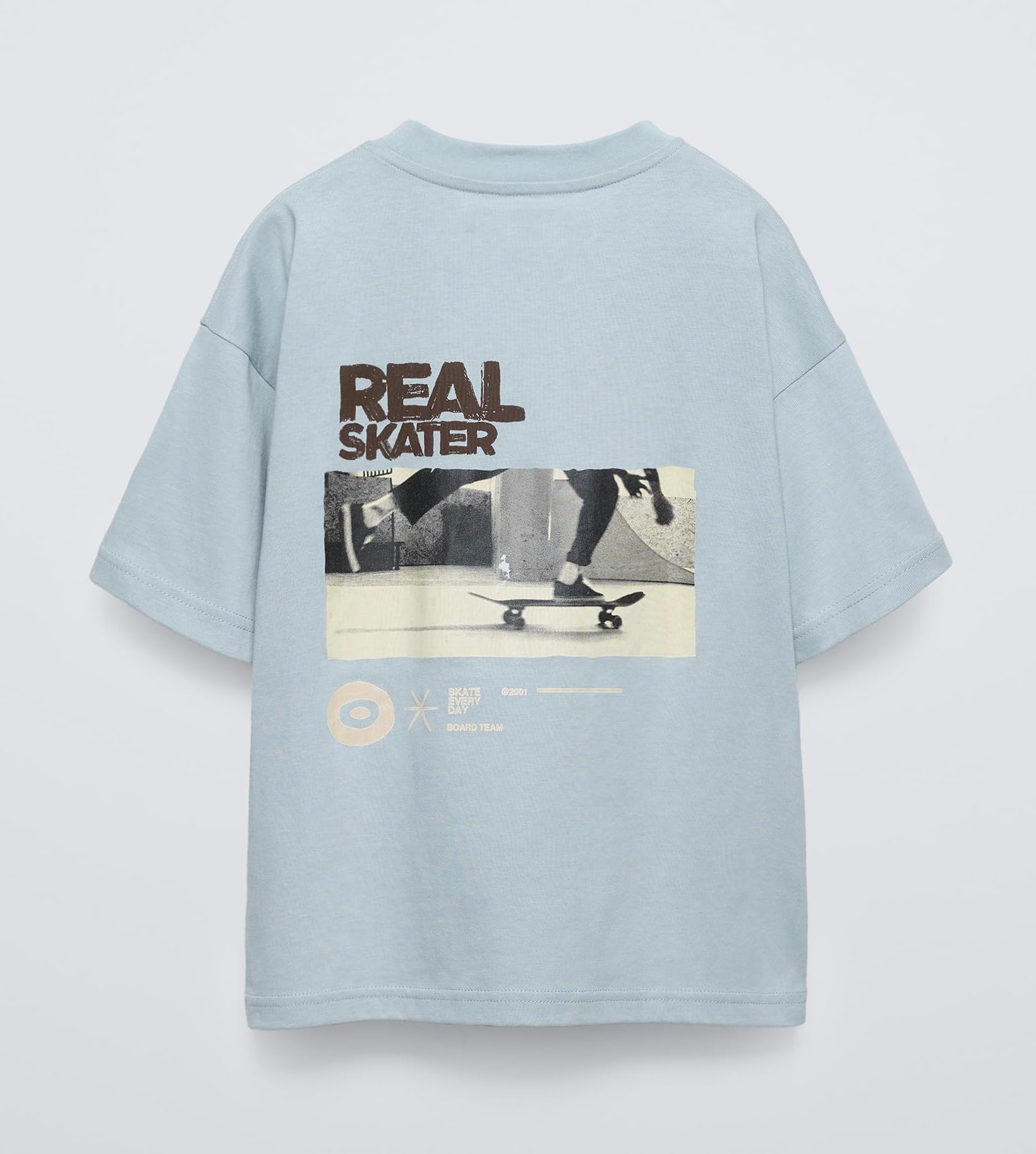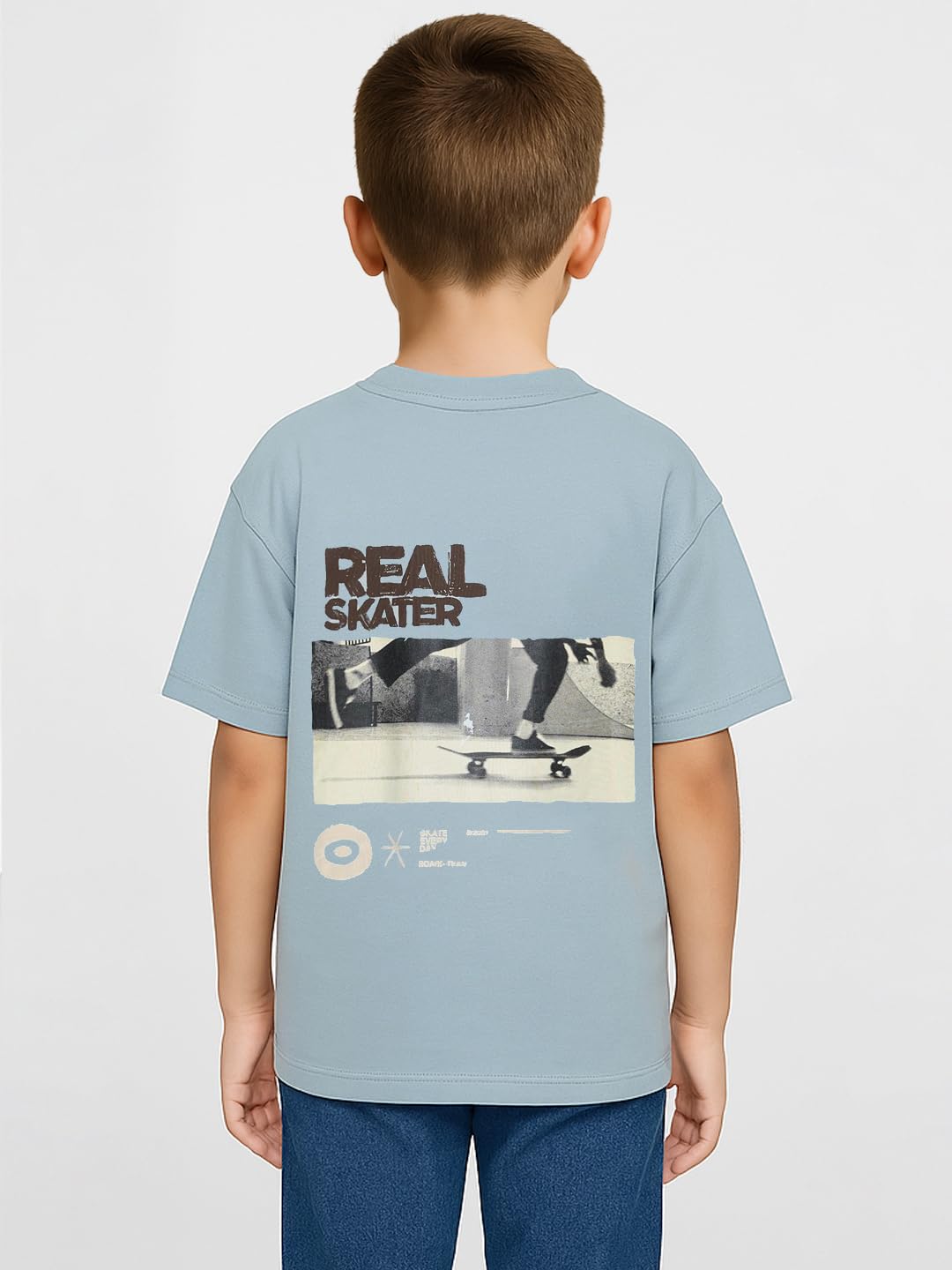 Alan Jones Clothing Boys Oversize Printed Cotton Round Neck T-Shirt (Sky Blue_15-16 Years)