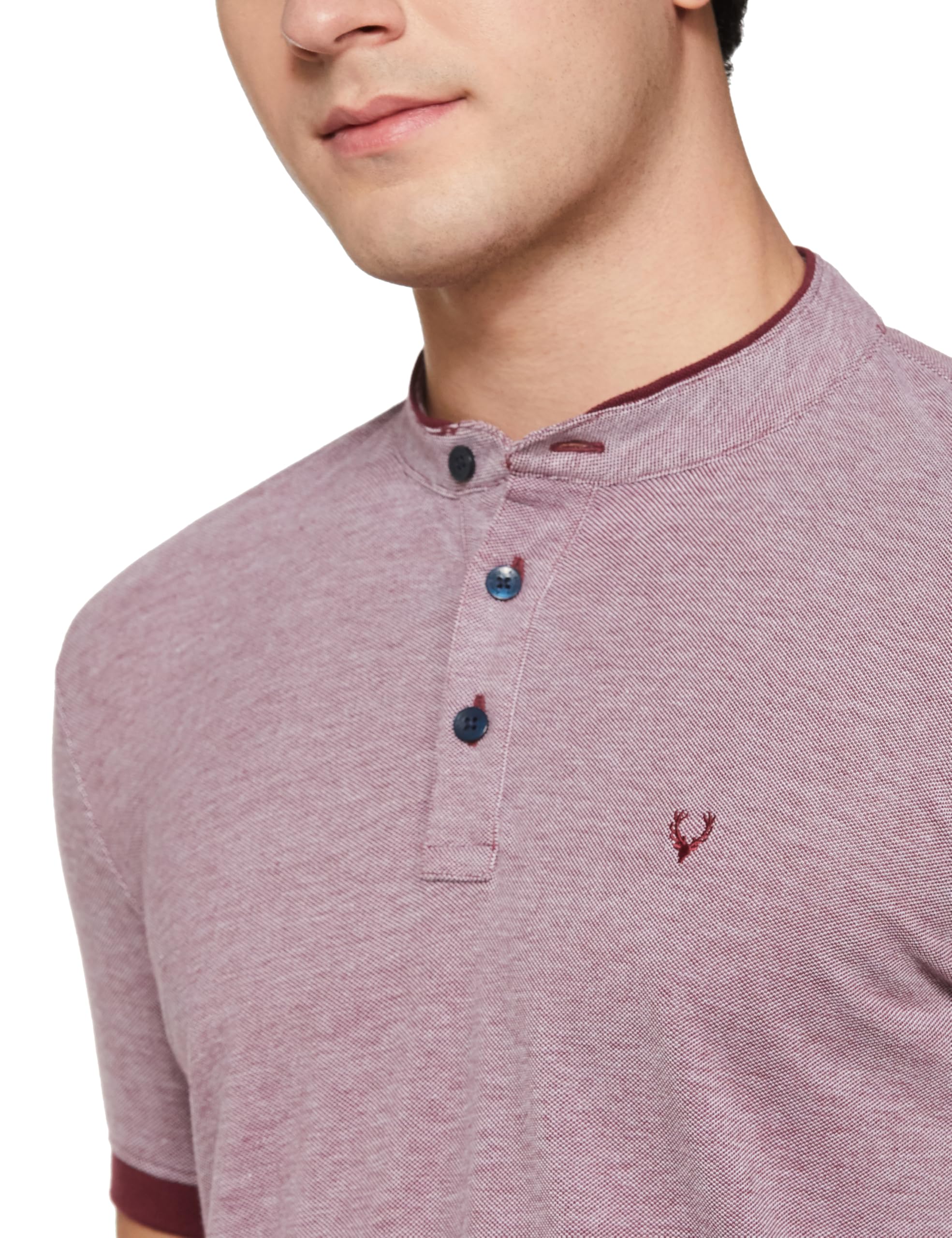 Ace weekend dressing in this Grey Textured Henley Neck T-shirt from Allen Solly Jeans by Allen Solly.