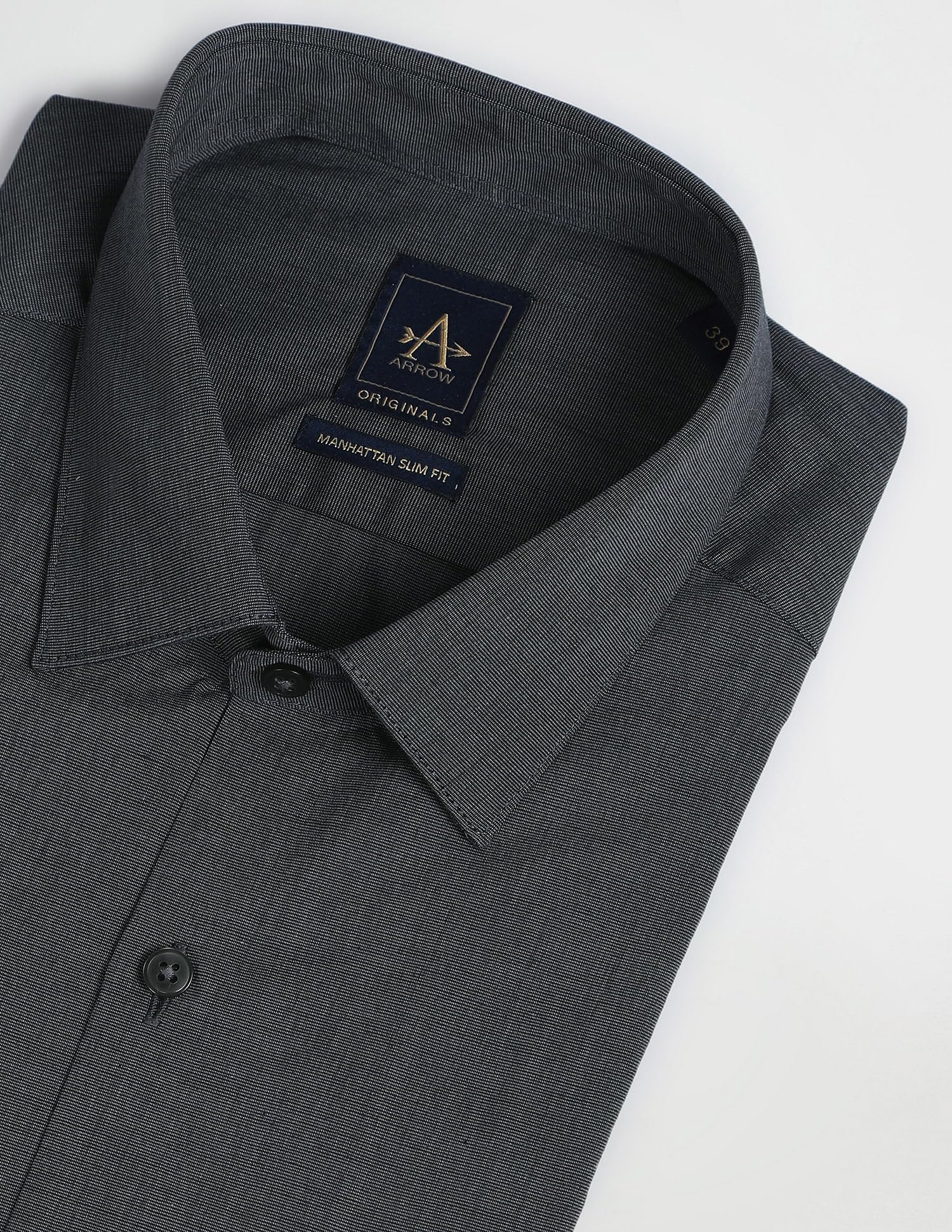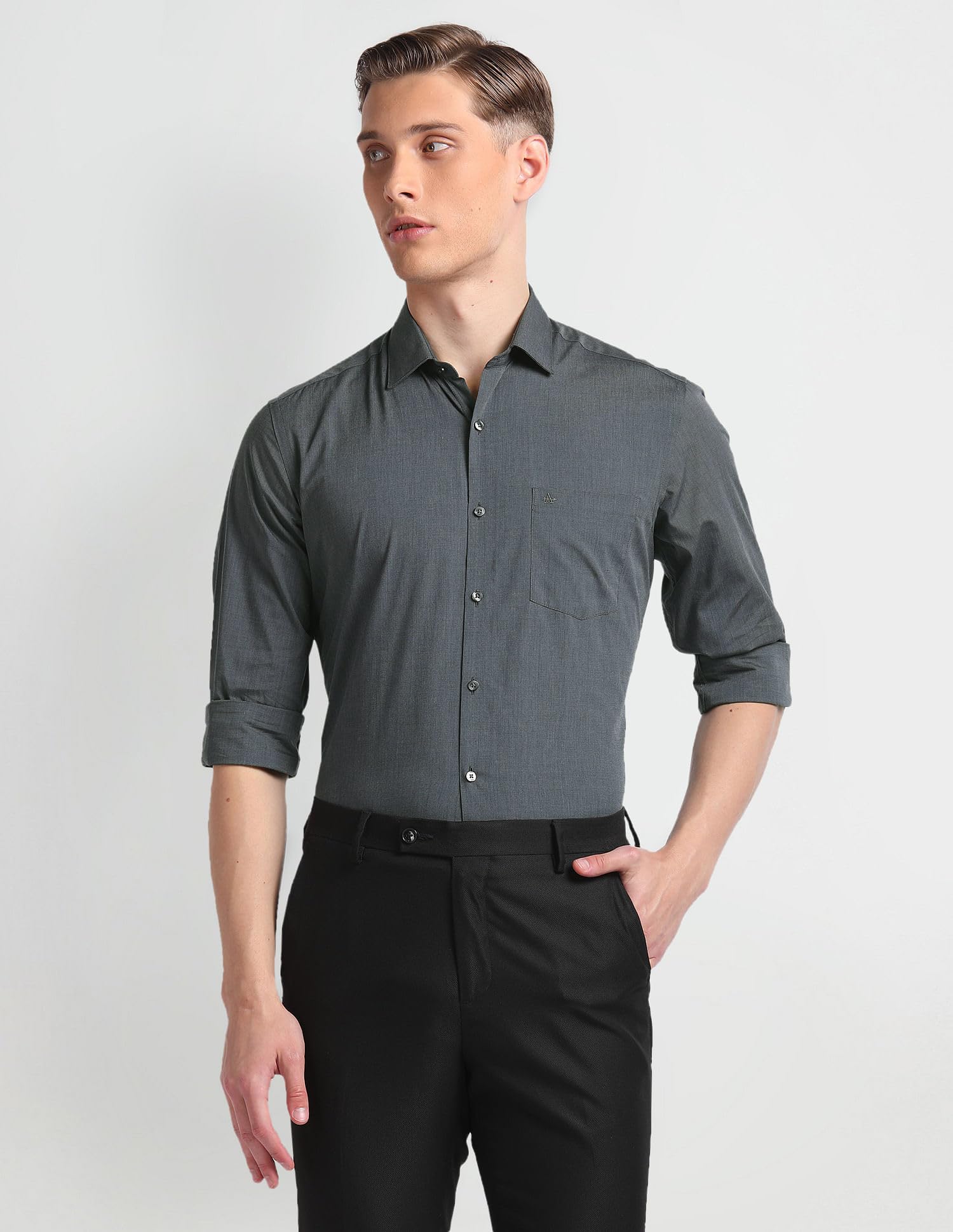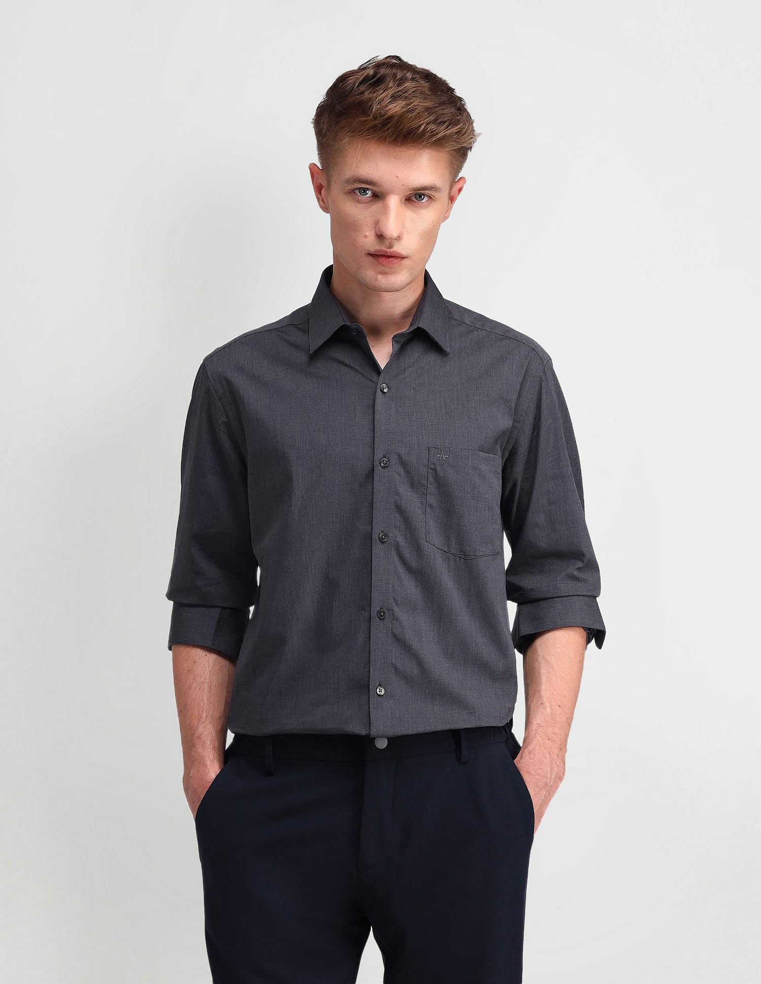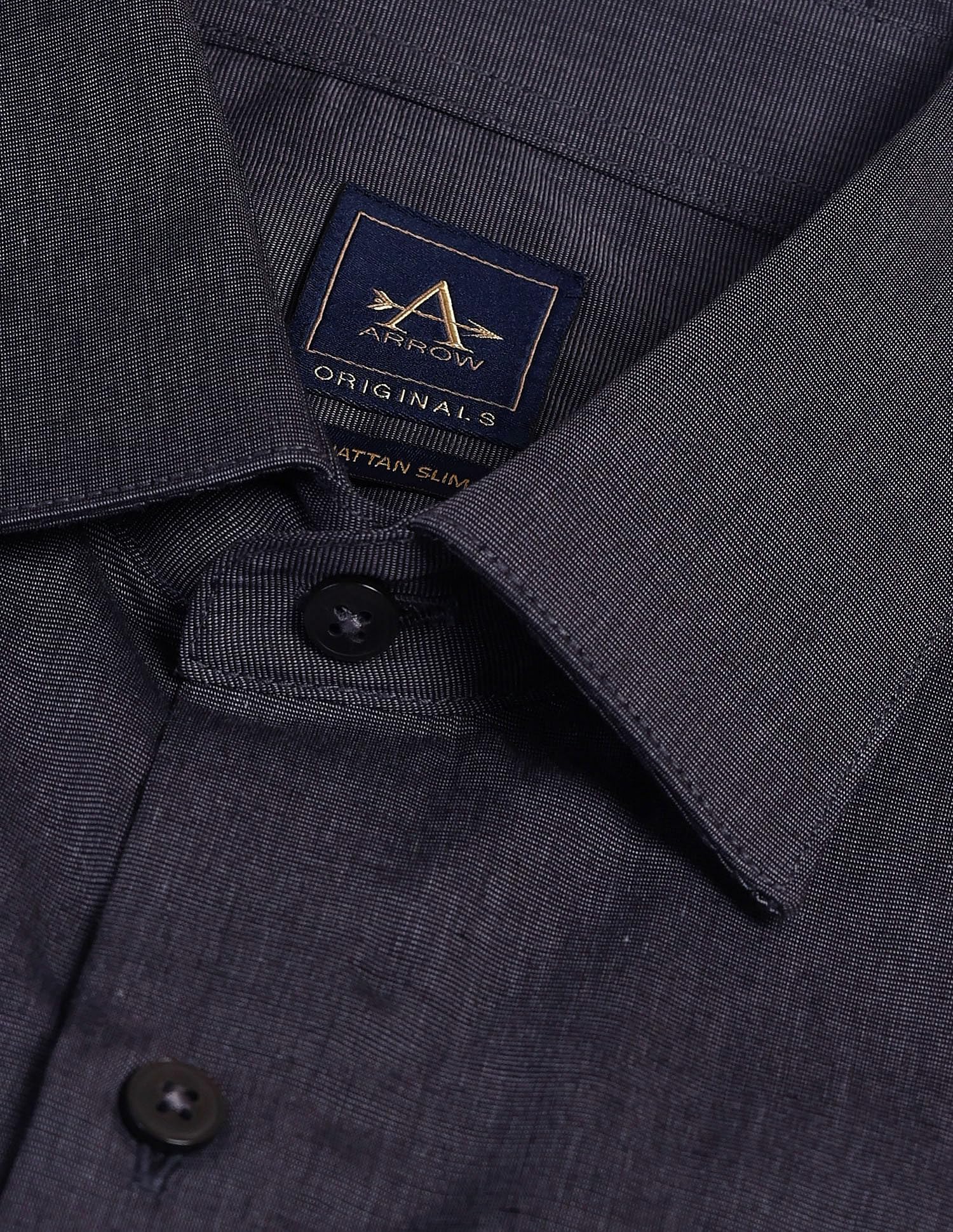 Stand out in any work setup by putting on this light blue Arrow shirt, which features a refined solid pattern. Crafted from lightweight cotton fabric, it ensures around-the-clock comfort. Moreover, the Manhattan slim fit of this formal shirt flatters your form without feeling constricting. The crisp cutaway collar and adaptable long sleeves of this shirt create a versatile appearance suitable for any occasion. What’s more, the chest patch pocket on this cotton shirt for men offers a subtle touch of charm, while providing a handy spot for practical usage.