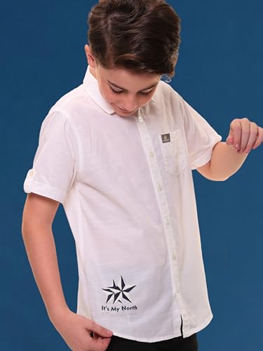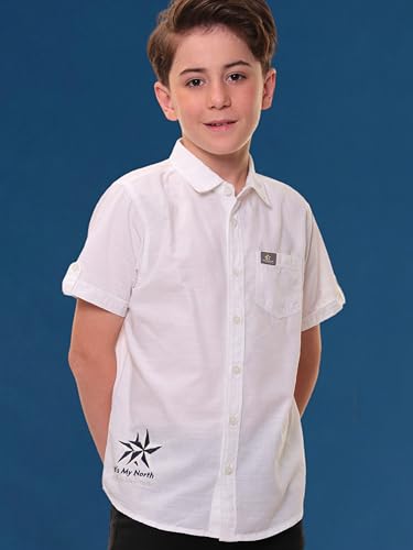 Light and Elegant Design with Embroidery : Add sophistication to your child’s summer wardrobe with this boy’s half-sleeve linen-cotton shirt. Crafted in a pure white tone, the shirt features stylish embroidery on the wearer’s left side with the “It’s My North” design. The sleeve tabs and regular collar enhance its understated elegance, making it ideal for casual outings, school events, or family get-togethers.