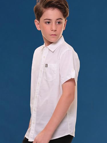 imymeco Boy’s Half Sleeve Linen Cotton Shirt – Pure White with Embroidery and Sleeve Tabs – Soft, Breathable, Stylish, and Perfect for Summer Casual Wear_18-24 M