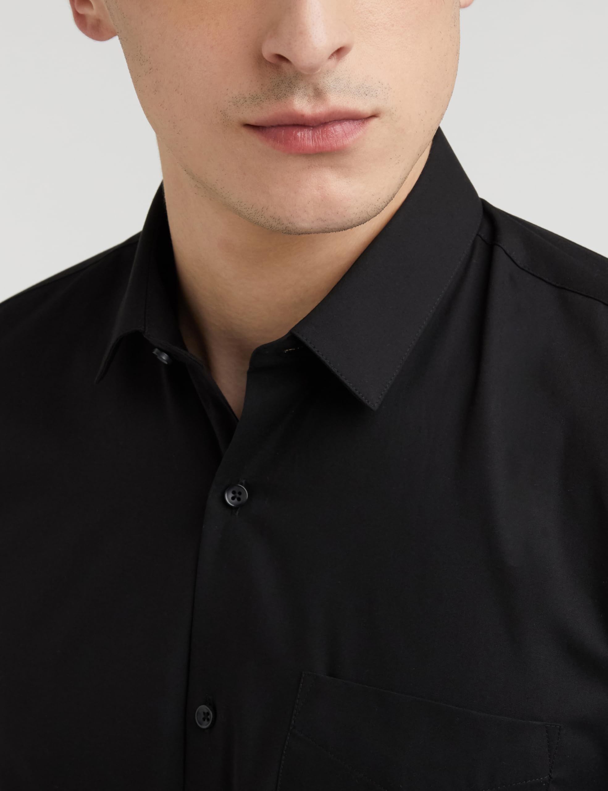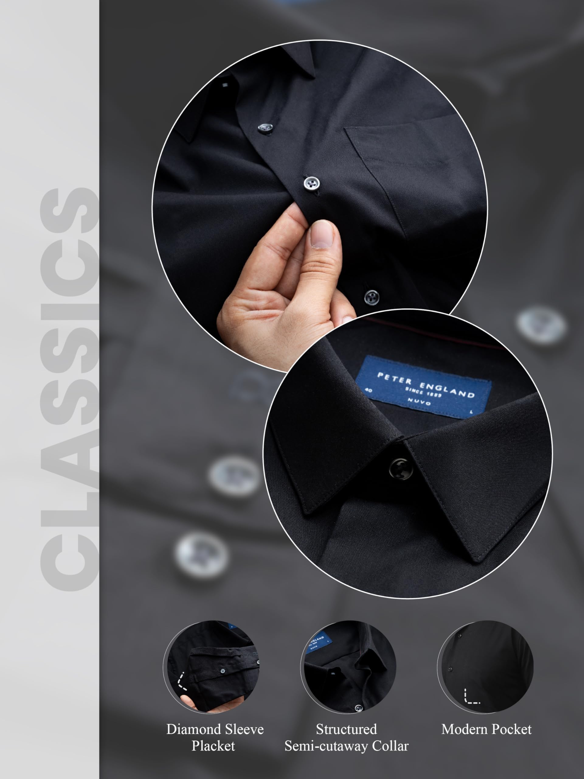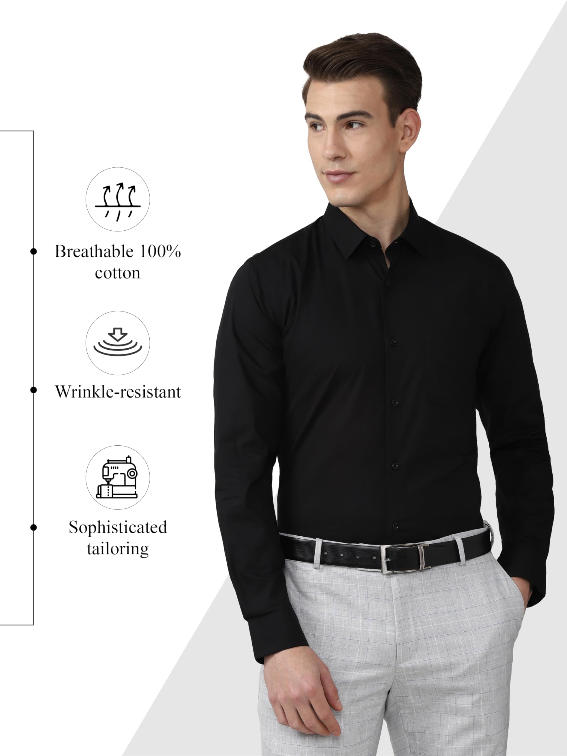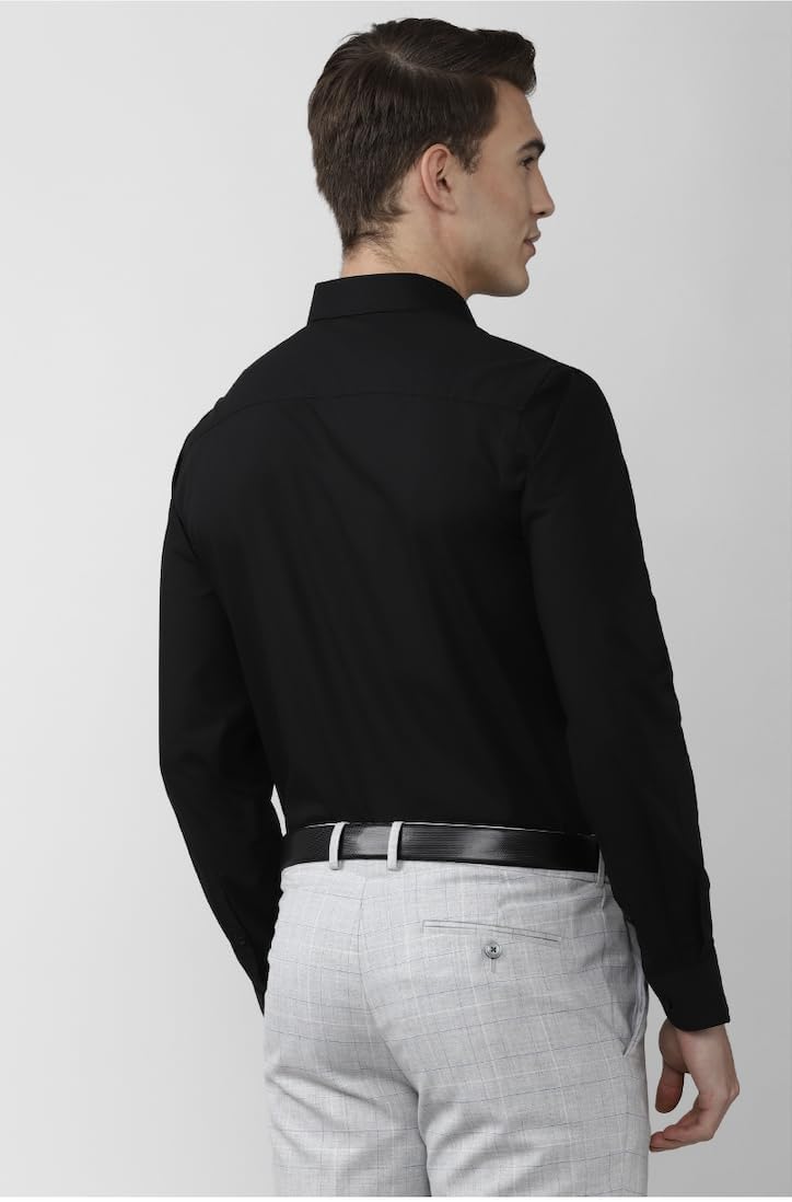 Peter England Cotton Jeans Men’s Solid Slim FiT-Shirt (Pesfmslb003086_Black 42)