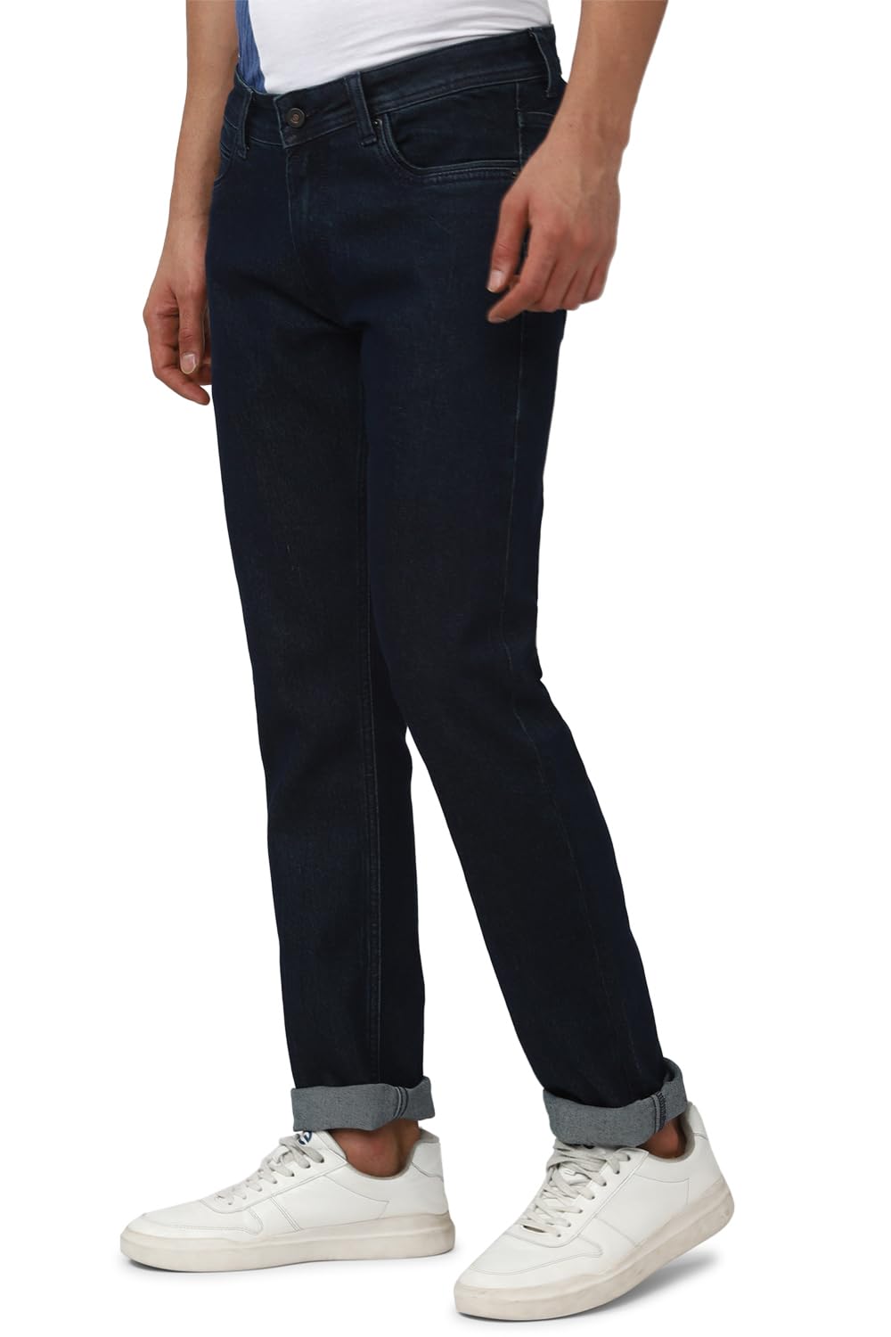 Peter England Men’s Neo-Slim Fit Stretchable Mid Rise Jeans, 30, Navy Blue