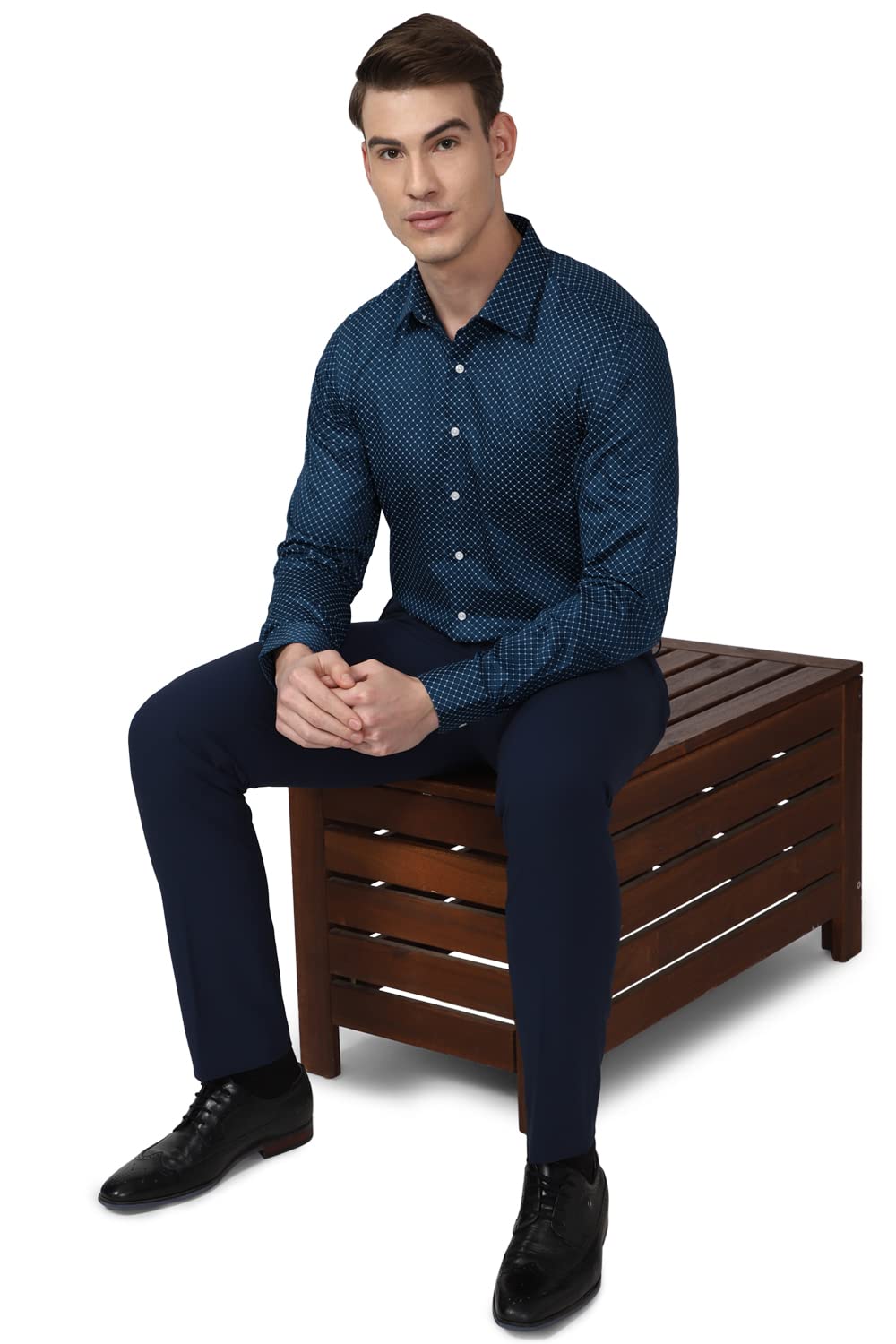 Product Type & Features – Printed Formal Shirt, Slim Fit, Full sleeves, Regular length, Cutaway collar and V Pocket. Fabric – Crafted from 100% premium cotton, this formal shirt offers unmatched comfort and breathability, keeping you fresh from morning meetings to evening dinners. With a tailored fit and timeless design, it’s the perfect choice for professionals who value both style and substance. Size – Refer to regular size chart to pick your correct size Occasion – Ideal for business meetings, formal events, and everyday elegance across all seasons. Designed for comfort and style, it pairs seamlessly with trousers or chinos for a polished, sophisticated look.